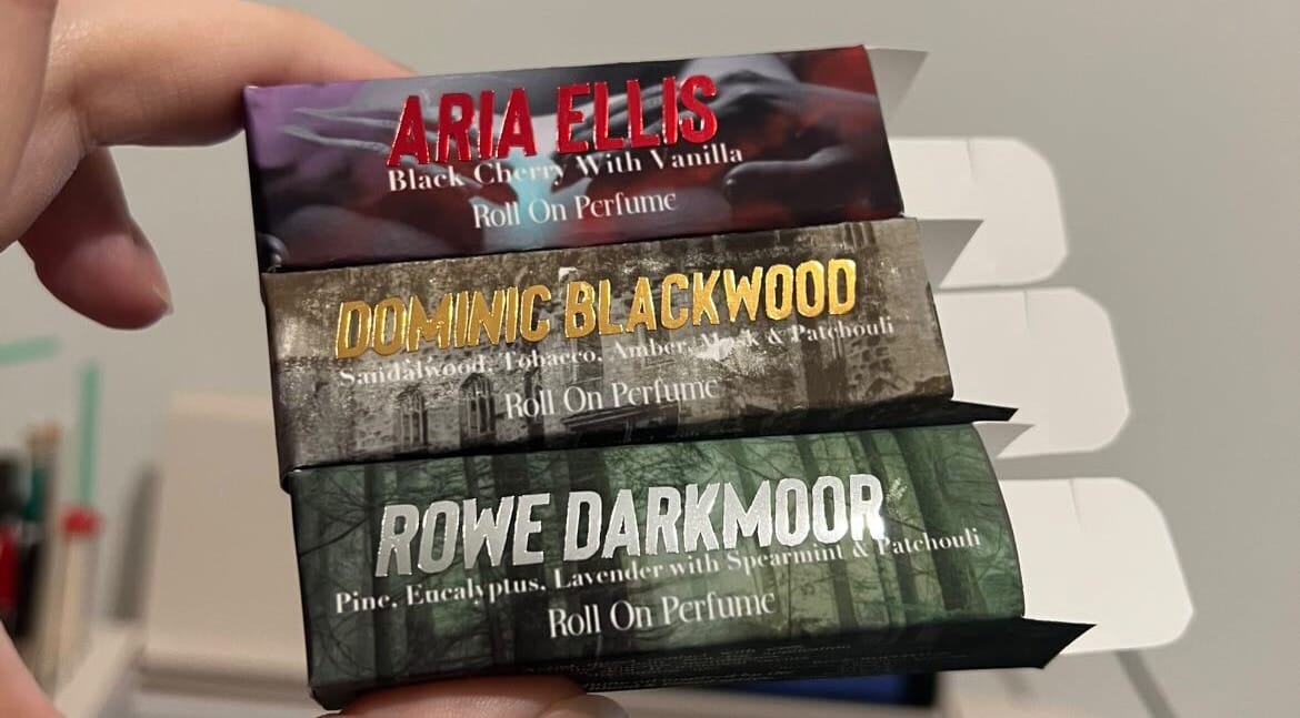 The second event exclusive is When Blood Runs Red inspired oil perfumes, which I created in collaboration with Stellaire Apothecary. They smell exactly how I imagine the characters to smell, which honestly still feels a bit surreal. I wanted these to be small but meaningful keepsakes tied to the main characters, and this felt like the perfect way to do it.