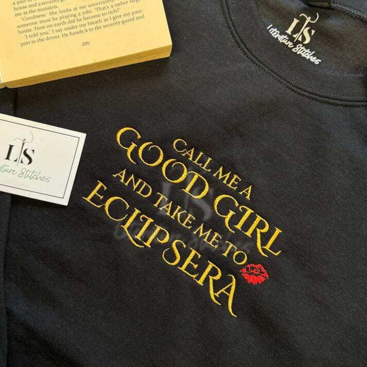 I’ve done my very first collaboration with Literature Stitches, and we’re bringing you the most gorgeous sweatshirt inspired by the book. The text on it is “call me a good girl and take me to Eclipsera”, which honestly had to be the line we used (especially since that’s one of my all-time favourite micro tropes). It was an absolute pleasure working with Ami on this, and you’ve got plenty of colour and size options to choose from, plus worldwide shipping.